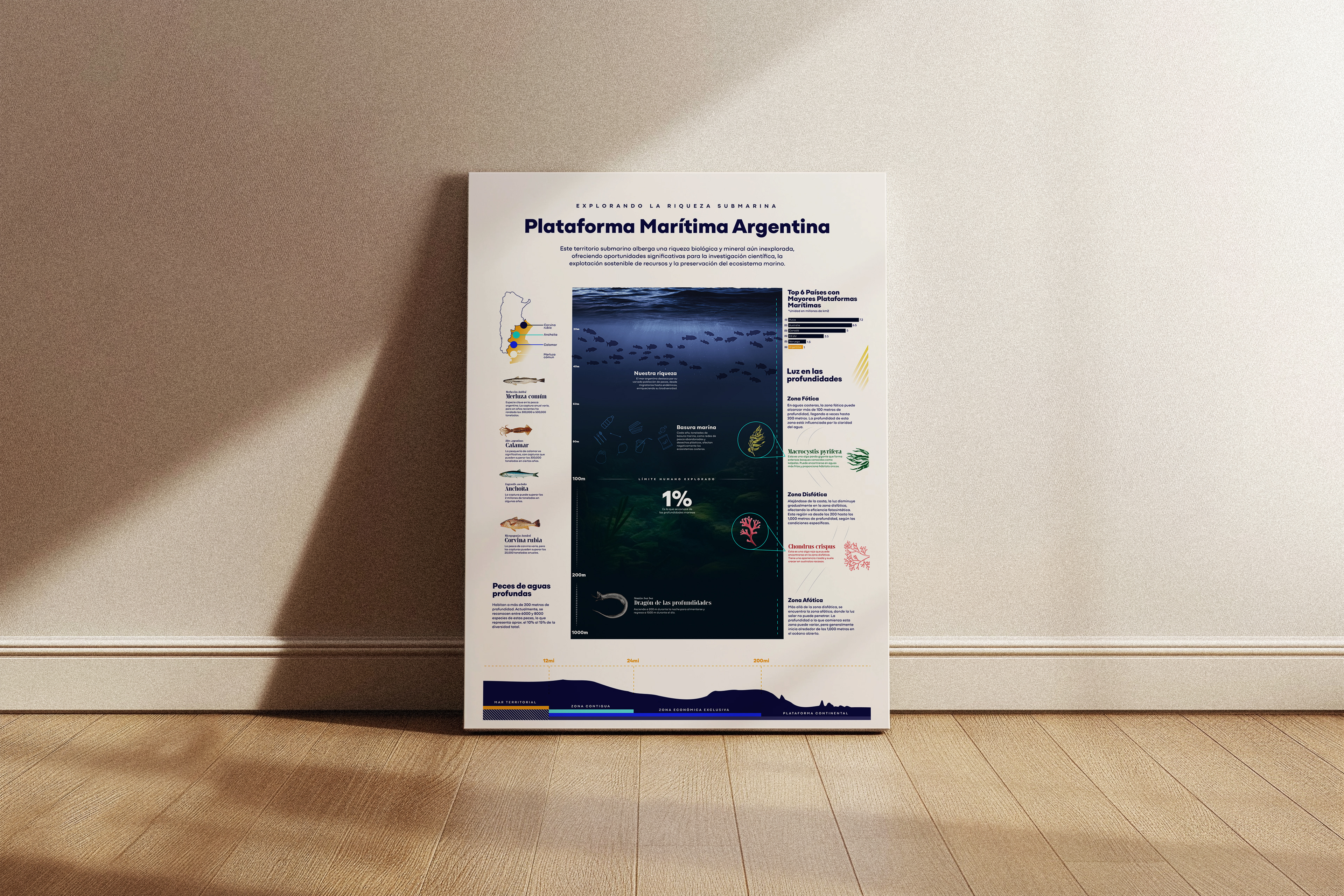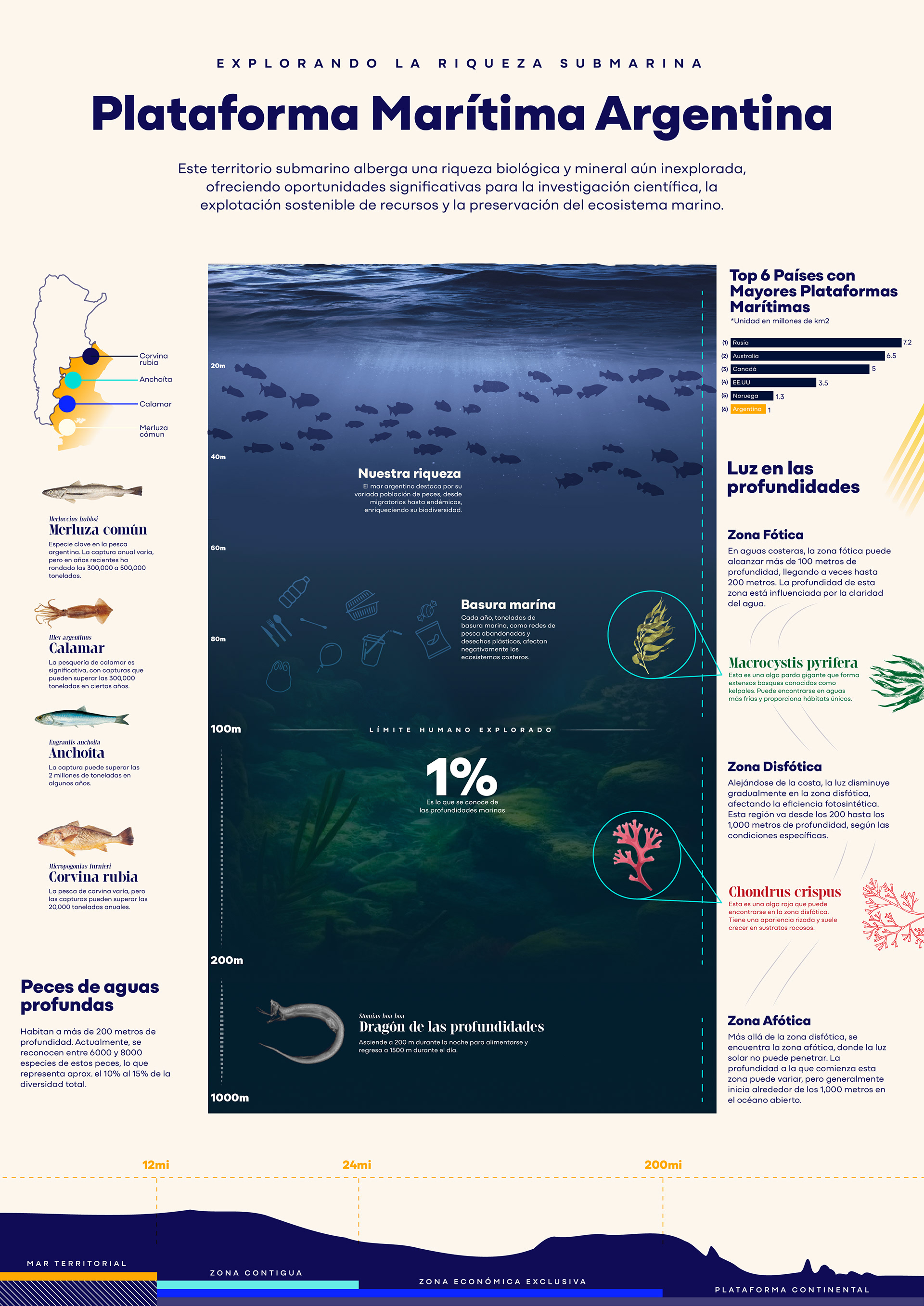 es un afiche infográfico que trata sobre la plataforma marítima Argentina, un recurso inigualable que tiene nuestro país.